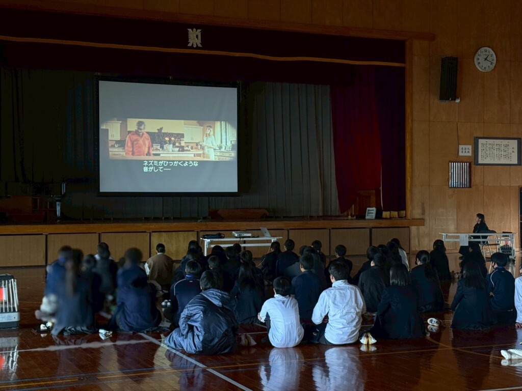 今回は南国市にあります、香南中学校の全校生徒さんに向けて、ドラゴン騎士団とフォルティッシモという2本のショートムービーを上映させていただきました。